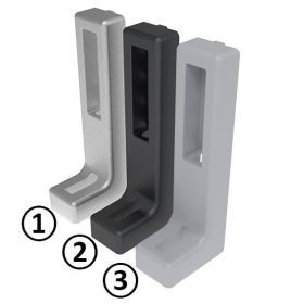 Bodenelemente wie Rollen, Stellfüße und Transport und Fußplatte. Es sind stabile Befestigung, die an den Profilen verschraubt werden.Transport- und Fußplatte 40x80 ZN. Abb. 1